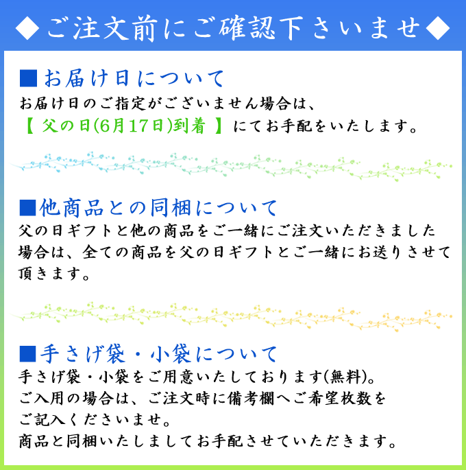 製造者(株)土井志ば漬本舗〒601-1251 京都市左京区八瀬花尻町41(TEL)075-744-2311父の日ギフト FA30 内容数 7種7点入 (志ば漬きざみ(90g)、すぐききざみ(90g)、 黒七味入りはんなり漬大根(1袋)、はんなり漬胡瓜(ハーフ)(1袋)、ぶぶ漬しぐれ(90g)、 おかず京漬物ぬか漬大根(95g)、胡瓜からし漬(90g)) ※原材料の一部に小麦・大豆を含む 内容量 455g+2袋 賞味期限 (製造日含む)10日 ※6月17日到着受付は6月16日午前9時まで!(※北海道・沖縄等を除く※前払い制です)